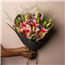 描述: 5枝粉色百合与绿叶组成、精美包装。
